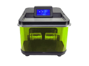 Nắp an toàn có thể nâng lên để dễ dàng tiếp cận giá đỡ mẫu và tự động khóa trong quá trình vận hành. Thiết kế bao quanh của nắp acrylic trong suốt cho phép quan sát quá trình đồng nhất.