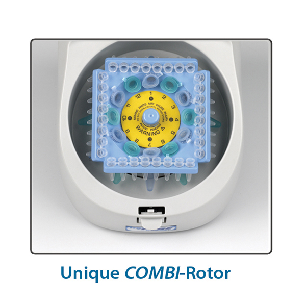 Không giống như các máy ly tâm mini truyền thống, MyFuge™ 12 mới loại bỏ nhu cầu thay đổi rotor khi chuyển đổi giữa microtube và dải PCR. COMBI-Rotor™ độc đáo đi kèm là tất cả những gì cần thiết để chạy 12 microtube và/hoặc 4 dải PCR.