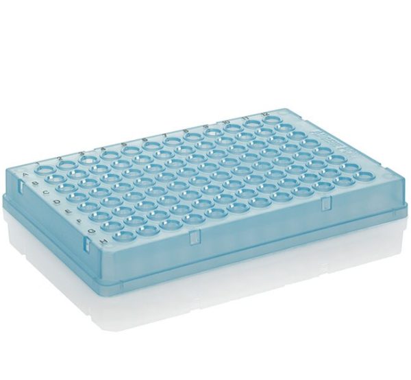 THERMO – Đĩa PCR, 96 giếng, Low Profile, toàn viền, chữ màu đen, giếng màu xanh dương