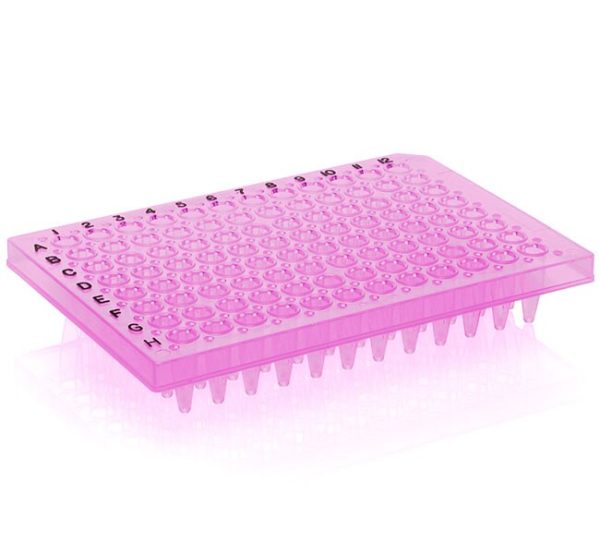 Các Đĩa PCR 96 giếng, bán viền, mặt phẳng, màu tím với chữ đen của Thermo Scientific tương thích với hầu hết các máy khuấy nhiệt (thermal cycler) và nền tảng ABI, bao gồm cả máy giải trình tự, mà không cần bộ chuyển đổi. Nhựa PCR của Thermo Scientific được thiết kế, sản xuất và kiểm tra để đảm bảo hiệu suất PCR. Các đĩa này có thể chứa tối đa 0,3 mL mỗi giếng khi sử dụng màng dính hoặc miếng niêm phong nhiệt.
